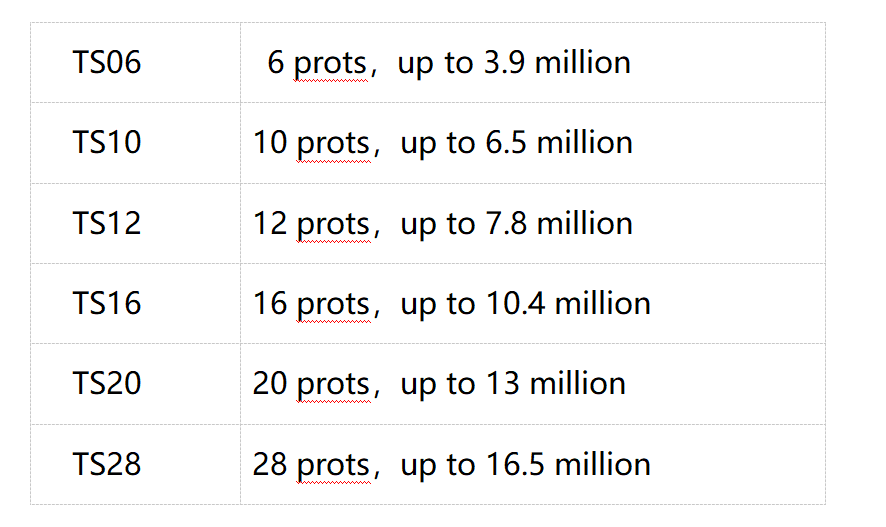 2. 6 model for the series: TS06/TS10/TS12/TS16/TS20/TS28, and supports 6/10/12/16/20/28 gigabit